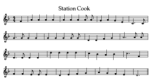 Printed in Stewart and Keesing Old Bush Songs with the note: "From Dr Percy Jones's collection". Sung to the same tune as 'Lachlan Tigers', a tune related to the Scottish song 'Musselburgh Fair'. Sally Sloane had a song, learnt from her step father, called 'Knickerbocker Line', which uses the same tune 'The Station Cook' is also known as 'Fowler's Bay'