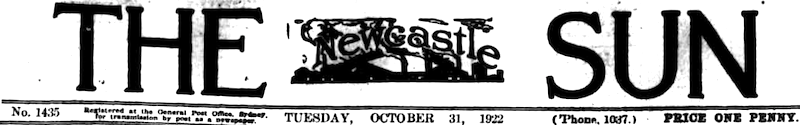 From the NSW Newspaper The Newcastle Sun 31 Oct 1922 p. 3.