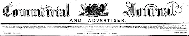 From the Sydney Newspaper The Commercial Journal and Advertiser 17 Jul 1839 p. 3.
