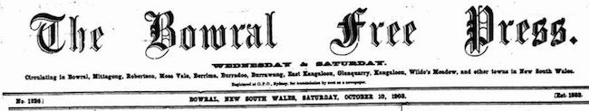 From the NSW Newspaper The Bowral Free Press 10 Oct 1903 Page 3.