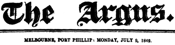 From the Argus Monday 9 July 1849.