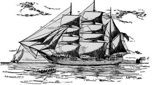 By early morning the Georgette was outside the Rottnest, and at daylight sighted a ahip bearing S.S.E., under full sail. The Georgette hereupon hoisted her pennant and the ensign, end all hands were put under arms. As the Georgette did not gain upon the ship and the wind was refreshing, a gun was fired under the vessel's stern -- and she then ran up the American flag. She gave no further notice of the signal, and the Georgette, under full steam and all sail, gave full chase. As the ship did not attempt to shorten sail, or take any notice of the signal, when the Georgette had steamed to within a quarter of a mile of her, a gun was fired across her bow and the captain of the ship then got into the quarter boat. The Georgette stood on until within hailing distance, when the Superintendent of' the Water Police, Mr. J. F. Stone, addressing the captain, said--