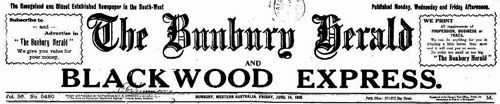 From the Western Australian newspaper the Bunbury Herald and Blackwood Express Friday 14 June 1929