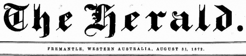 From the Western Australian newspaper the Herald Saturday 31 August 1872