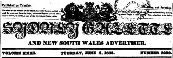 From the NSW newspaper the The Sydney Gazette and New South Wales Advertiser Tuesday 4 June 1833 p. 4.