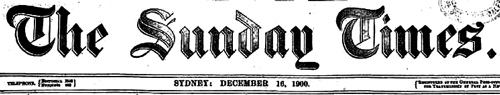 From the Sydney newspaper the Sunday Times Sunday 16 December 1900 p. 3 S.