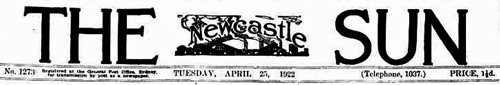 From the NSW newspaper the Newcastle Sun Tuesday 25 April 1922 p. 3.