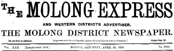 From the NSW newspaper the Molong Express and Western District Advertiser Saturday 30 April 1898 p. 3.