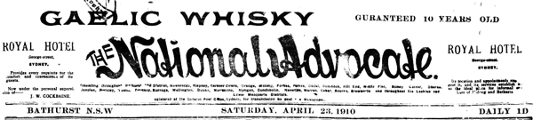 From the Bathurst NSW Newspaper the National Advocate Saturday 23 April 1910 p. 2.