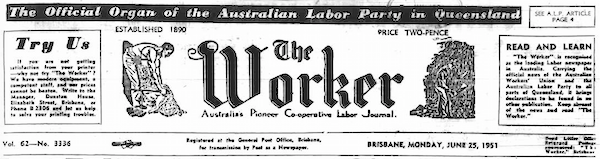 From the Brisbane Newspaper the Worker Monday 25 June 1951 p. 4.