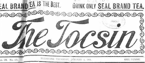 From the Melbourne Journal the Tocsin Thursday 3 January 1901 p. 2.