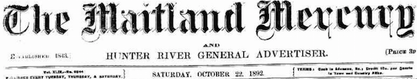 From the NSW newspaper the Maitland Mercury and Hunter River General Advertiser Saturday 22 October 1892, p. 8 S.