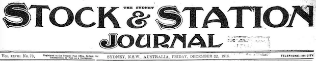 From the NSW newspaper the Sydney Stock and Station Journal Friday 22 December 1916, p. 3.