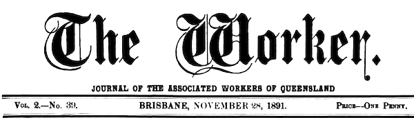 From the Brisbane newspaper the Worker Saturday 28 November 1891, p. 2.