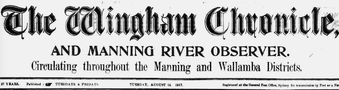 From the NSW newspaper the The Wingham Chronicle and Manning River Observer Previous issueTuesday 14 August 1917, p. 2.