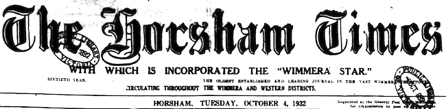From the Victorian newspaper the Horsham Times Tuesday 4 October 1932 p. 7.