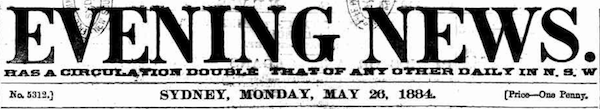 From the Sydney Newspaper the Evening News Mon 26 May 1884 p. 3.