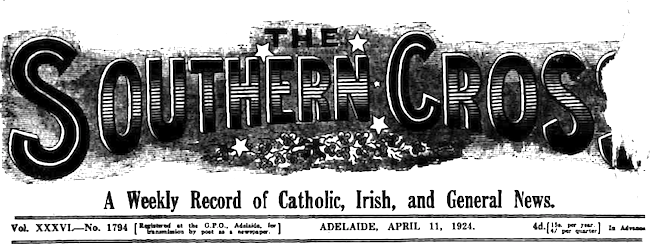 From the South Australian Newspaper the Southern Cross Fri 11 Apr 1924 p. 4.