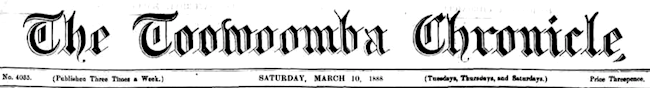 Crow's Nest, March 9th, 1888. Notes From the Brisbane Newspaper the Toowoomba Chronicle and Darling Downs General Advertiser 10 Mar 1888 p. 5. Top