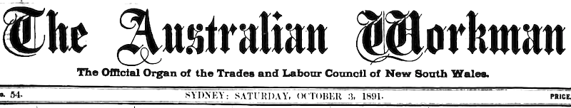 "Australia ! the fair and lovely ! the fearless, and true, and free !" J. A. ANDREWS. Notes From the Sydney Newspaper the Australian Workman 3 Oct 1891 p. 4.Top
