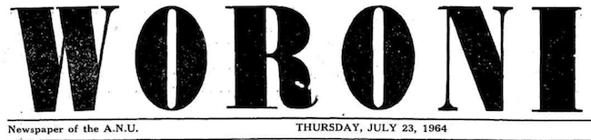 Or go' an' break stone on the road." When interviewed later, the President of the new society, Mr, Scott Bennett, said the Historical Society had two main aims. The first was to publish a regular historical journal of high quality to which undergraduate students will be encouraged to submit their best work. The inaugural issue is planned for publication in third term. The Society is holding seminars at which students and others will be invited to present, and discuss papers. "Undergraduates will benefit considerably from having to defend their work before critical audiences," Mr. Bennett said. Two such seminars have already been held and it is hoped to have a third one this term. --M.B.G. Notes From the ANU student newspaper the Woroni 23 Jul 1964 p. 4.