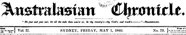 And Liberty's smile shall yet beam over thee. E. A. RENVILLE. Notes From the Sydney newspaper the Australasian Chronicle 1 May 1840 p. 4.Top