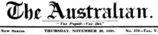 Penrith. Notes From the Sydney newspaper The Australian 29 Nov 1838 p. 3. Top