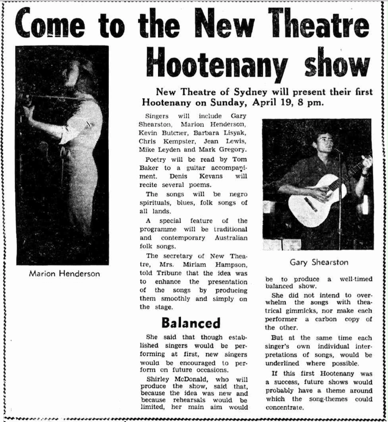 Folk Revival (1964)Notes From the NSW Newspaper The Tribune 15 Apr 1964 p. 7. Chris Kempster, Jean Lewis, Mike Leyden and Mark Gregory were members of the Radiation Quartet in Sydney and members of the Sydney University Folk Music Society.