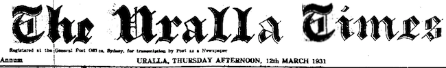 And finds its goal among the hills A little old, grey town. --Ella McFadyen. Notes From the NSW Newspaper The Uralla Times 12 Mar 1931 p 4.