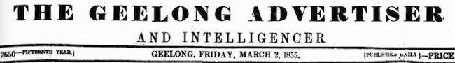 Geelong, 8th May, 1855 NotesFrom the Victorian Newspaper Geelong Advertiser and Intelligencer 2 Mar 1855 p. 5.