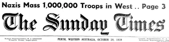 Notes From the Perth Newspaper The Sunday Times 29 Oct 1939 p. 32