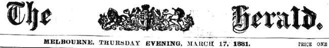 From the Victorian Newspaper The Melbourne Herald 17 Mar 1881 p. 2.