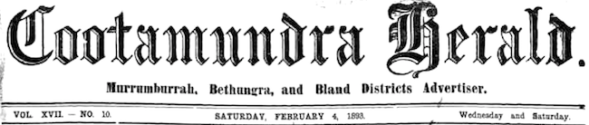 From the NSW Newspaper The Cootamundra Herald 4 Feb 1893 p, 7.