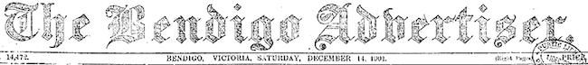 From the Victorian Newspaper The Bendigo Advertiser 14 Dec 1901 p. 7.
