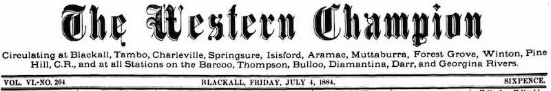 From the Queensland Newspaper The Western Champion 4 Jul 1884 Page 2.