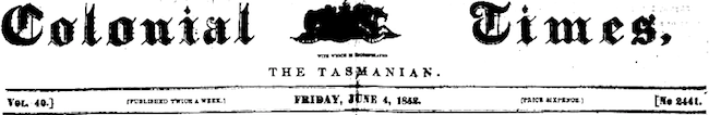 From the Tasmanian Newspaper The Colonial Times 4 Jun 1852 p. 3.