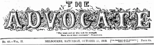 From the Melbourne newspaper the Advocate Saturday 23 October 1869 p. 4.