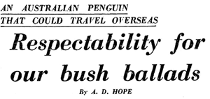 Penguin Book of Australian Ballads: reviewed by A.D. Hope (1964)