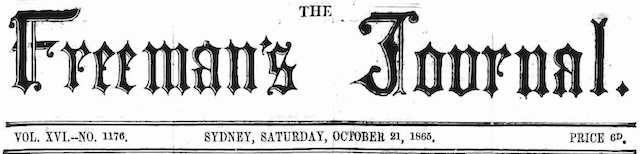 From the Sydney newspaper the Freeman's Journal Saturday 28 October 1865.