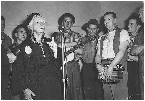Some recollections - Chris Kempster, February 2002©2002[Photo: Dame Mary Gilmore and The Bushwhackers: Alex Hood, Harry Kay, Chris Kempster, Alan Scott, John Meredith, Cecil Grivas, Jack Barrie]