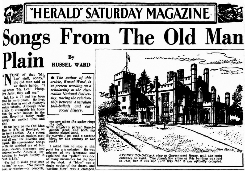 Once at Booligal he saw a policeman stop a man who was singing a convict-song. "There were only three places on the Old Man Plain, they used to say, Hay, Hell and Booligal; but Booligal was the worst." He recalled only a few lines: