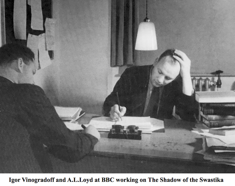 A. L. Lloyd spent six years in Australia between 1924 and 1930, working as a station hand in NSW. When he returned to England he took with him an interest in the songs he learned from shearers and other bush workers. His career as a folklorist is well known but he also became an early documentary radio program maker and broadcaster with the BBC. One of his most famous programs "The Shadow of the Swastika" was broadcast as the Second World War began. Through the BBC overseas service the program was broadcast in Australia and other countries across the world. Maryborough Chronicle, Thursday 9 November 1939 p. 8.