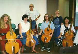 Geoff Wills with the beginner class (all using his viols)